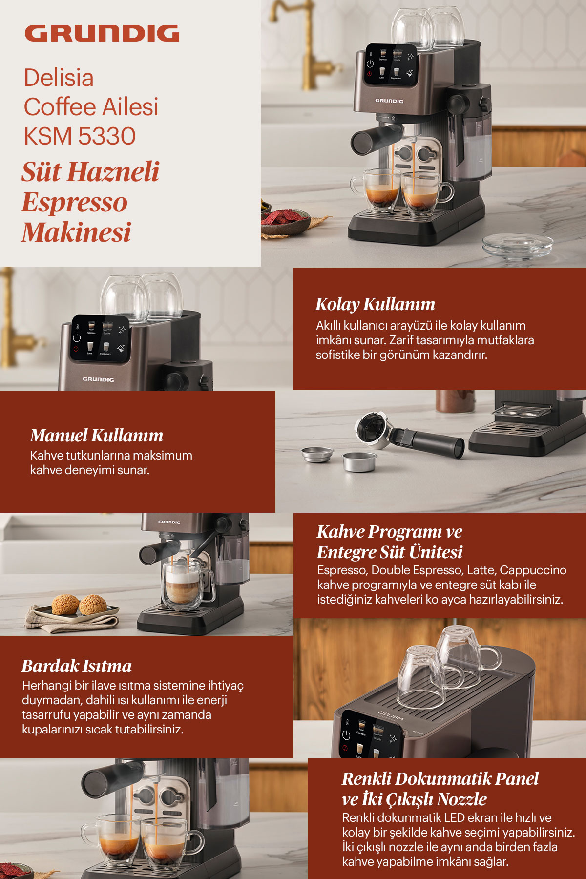 Grundig KSM 5330 Delisia Coffee Yarı Otomatik Süt Hazneli Espresso Makinesi Özellikleri