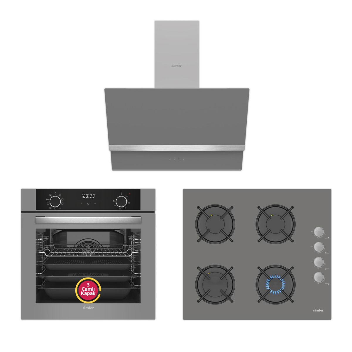 Simfer 10 Fonksiyon Airfry Gri Ankastre Set (8217 Fırın + 3538 Ocak + 8740 Davlumbaz)
